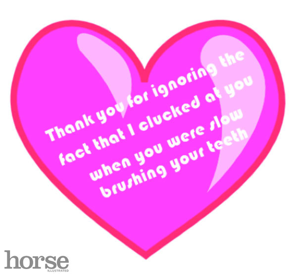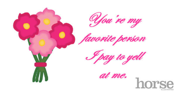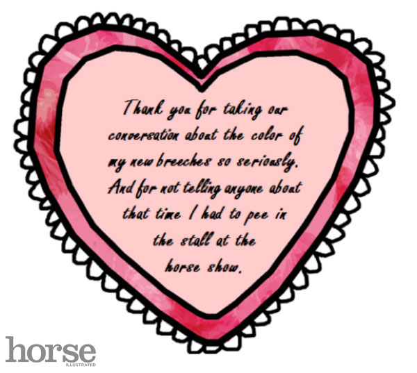 Valentine’s Day is almost here! And sometimes the store-bought cards just won’t do it for those you truly love. So for all the horse friends, horse husbands, horse trainers, and horses out there, here are a few handmade cards straight from the heart: