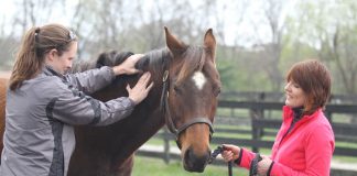 During your vet’s fall visit, discuss your senior horse’s winter diet. Adding a senior feed specially formulated for older horses may be recommended, as these are easily chewed and can help pack on calories without containing as much sugar and starch. Sometimes wetting hay cubes or making pelleted concentrate into a gruel helps senior horses slurp their supper, preventing excessive dropping of feed, and also helps decrease the chance of choke.
