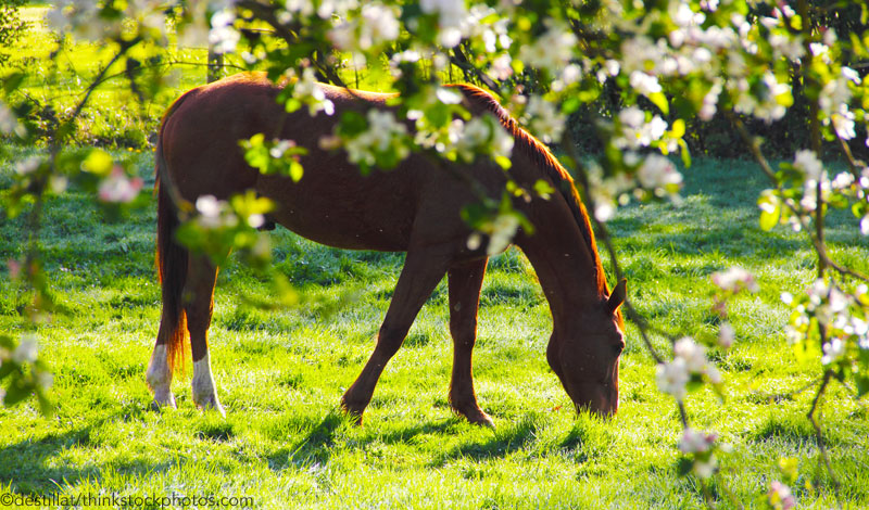 6. Pasture management. Spring is synonymous with rain and the resultant sudden growth of everything green, especially grass. While lush green pastures appear pleasing to the eye (and make your horse’s mouth water), the threat of laminitis due to the over-consumption of rich pasture is very real. Now is the best time to have your pasture management strategy in place. If your horse is on pasture, do you need to control his grass intake? If so, how? Strip grazing, limited turnout, the use of dry lots, and grazing muzzles are all good methods for preventing spring laminitis.