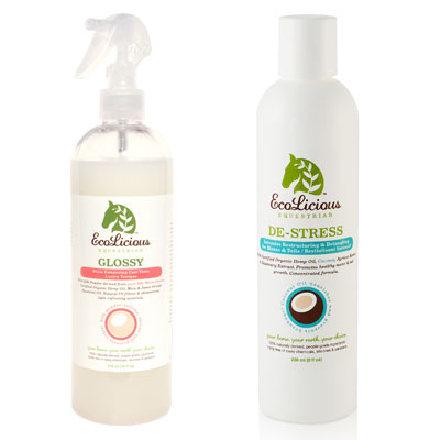 Horse IllustratedHorse Grooming product 8By Abigail Boatwright - March 27, 201311144 1 2 3 4 5 6 7 8 9 10 11 12 13 EcoLicious Equestrian GLOSSY Gloss Enhancing Tonic conditions, nourishes, moisturizes and adds gloss—without chemicals, silicones and parabens. Light – reflecting minerals create a delicate shimmer.EcoLicious Equestrian De-Stress Intensive Restructuring and Conditioning Treatment provides a cocktail of antioxidants and essential fatty acids to “feed” moisture starved scalp and tresses with certified organic hemp oil, coconut, apricot, wheat germ and olive oil.www.ecoliciousequestrian.com