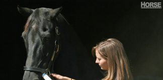 Note: some horse owners make a loop of bailing twine and tie it to the tie ring, then make the safety release knot on the twine. This is an added safety measure so that if the horse panics and you don’t reach the knot in time to pull him free, he will break the twine before he injures himself.