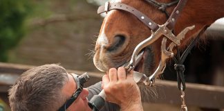 “Just a general physical is all the horse needs,” explains Friend. “I’ll listen to the heart and look for any kind of cardiomyopathy. I’ll make sure he’s moving freely with no lameness. I always look at the feet to make sure we’re not dealing with a low-grade laminitis. Laminitis is secondary to any disease or metabolic process, so if something is out of whack, like Cushing’s or insulin resistance, sometimes the first thing you’ll notice is sore-footedness. That’s my biggest concern in older horses.”