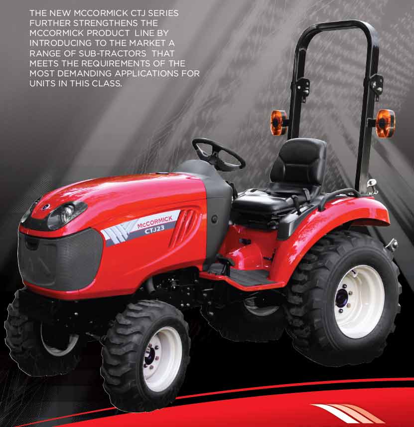 The McCormick CT Series of compact tractors features eight models ranging from 28 to 57 HP. Standard features on the McCormick CT Series tractors include adjustable steering wheel, cruise control, independent, electro-hydraulic power take-off (PTO) and a highly-responsive hydraulic system for operation of attachments. The CTJ series of sub-compact tractors features 23-27 HP with 18.5-21.5 PTO. You expect nothing less, and McCormick continues to deliver after more than 175 years. McCormick designs and builds its tractors to the highest standards to help make certain your compact tractor will provide years of exceptional performance. The extensive dealer network is handpicked to provide unsurpassed support before and after the sale. Learn more at www.mccormickusa.com
