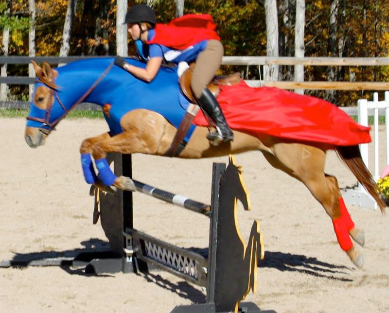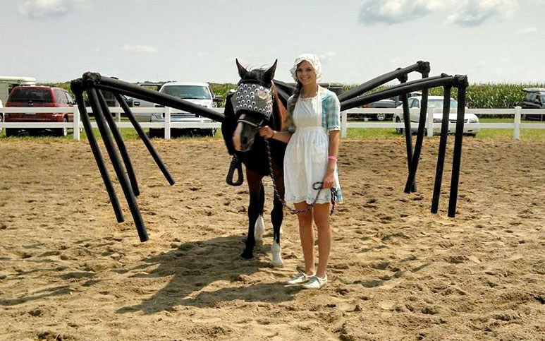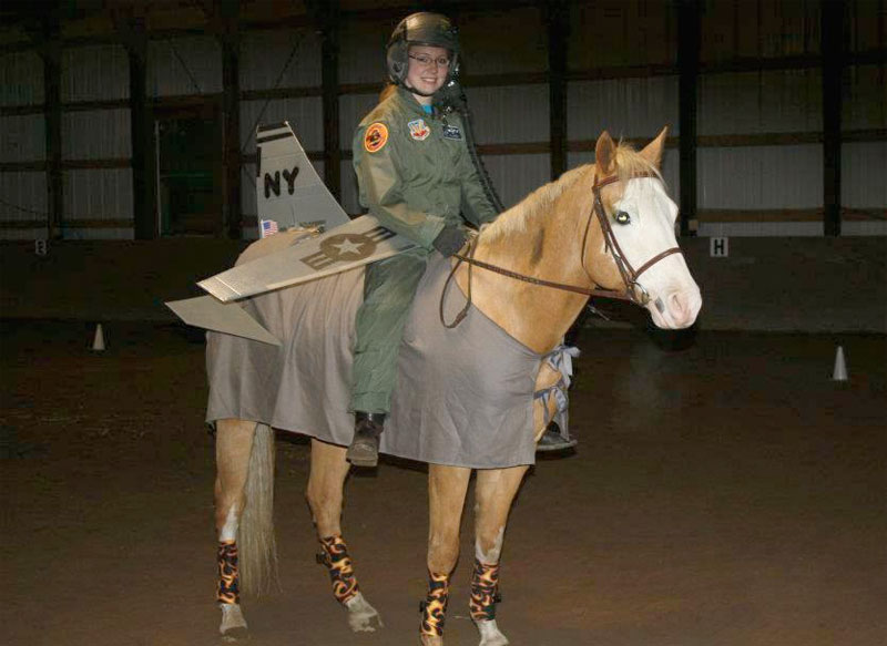 This is my horse and I, dressed as an F-16 fighter jet and I was the fighter pilot. I chose this costume because my dad used to be an F-16 pilot.