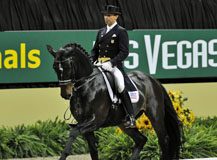 The performance was marked by Totilas’ flashy, high-stepping piaffe and extended trot. The stunning black 9-year-old, who goes by the barn name Toto, was approved as a KWPN (Dutch) breeding stallion after winning silver in the Grand Prix Special at Windsor.
