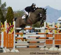 | Allison Kroff in the irons aboard Nomograaf in the $25,000 HITS Grand Prix during the 2008 HITS Arizona Winter Circuit. ©Deb Dawson Photography |