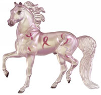 Breyer Animal Creations®, a division of Reeves International, Inc., has released two Pink Ribbon model horses to launch its 2010 Canter against Cancer program. Breyer has artfully melded the horse, long a symbol of strength, beauty and for many, a life healing force, with the pink ribbon, the symbol of breast cancer awareness, into a decorative model horse to symbolize the fight against this disease. The models are available as a Traditional Series Pink Ribbon Horse in 1/9th scale, as well as Stablemates® version in 1/32nd scale. Breyer will donate a portion of the proceeds from the sale of every model to two outstanding breast cancer research organizations: Susan G. Komen for the Cure® and the Breast Cancer Research Foundation.
