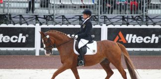 Anky van Grunsven and SalineroThree-time Olympic gold medalist Anky van Grunsven surprised the equestrian world when she announced that she would not seek a spot on the Dutch dressage team for this year’s Alltech FEI World Equestrian Games. Her 2004 and 2008 Olympic mount, Salinero, has been out of work due to an injury. Her other top horse, Painted Black, had been working inconsistently this year. She recently sold him to one of her students.