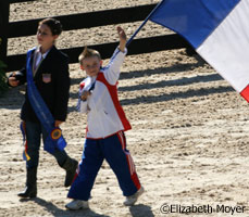 | Robin Krause of the French vaulting team waves to the audience at the closing ceremonies. Krause was the youngest competitor at the World Equestrian Games. Photo: Elizabeth Moyer. |