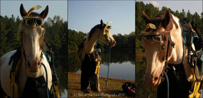 Sarah’s Paint gelding Rio is a SCUBA diving “sea horse.” Sarah won a pair of bell boots from Professional’s Choice.
