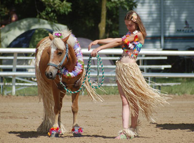 Janet’s daughter Kayla and Haflinger Sophie are an adorable pair of hula dancers. Janet won a pair of bell boots from Professional’s Choice.