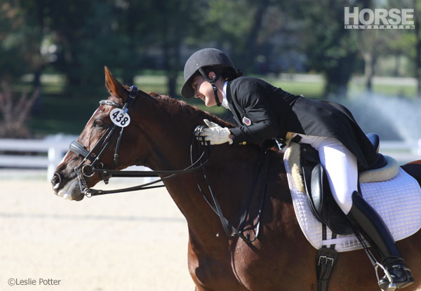 University of California-Davis sophomore Genay Vaughn rode the very flashy Donarweiss GGF to second place in the Brentina Cup test.