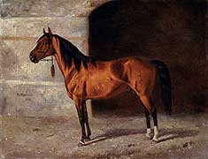 | A portrait of Kahn, a prized Karabakh stallion in 1865 by artist Nikolai Sverchkov. Image via Wikipedia. PD-1923 |