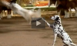 This year won’t be the first time that canine actors have joined the equine stars for a Budweiser commercial in the Super Bowl. The 1999 “Separated at Birth” spot showcased the Clydesdales’ Dalmatian companions.