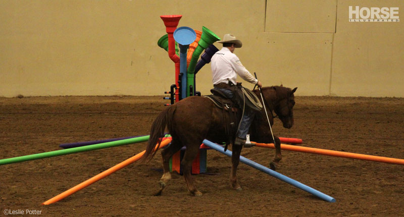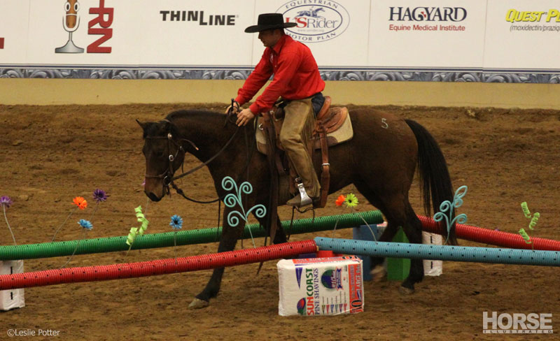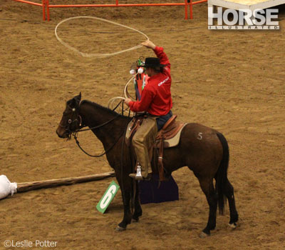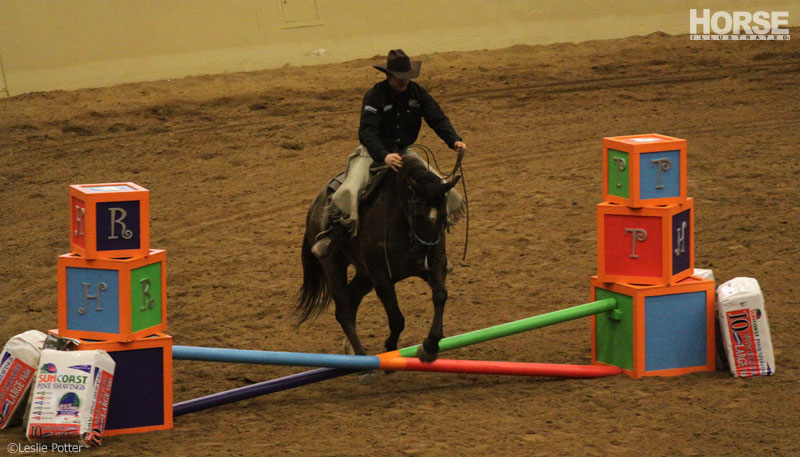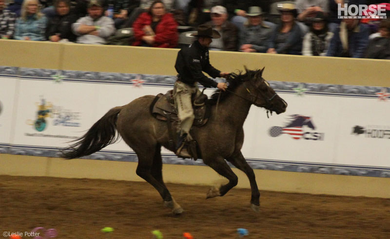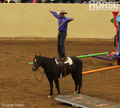 Ringer’s calm and willing attitude carried through the entirety of the obstacle course, and the pair finished with nine minutes to spare. Steers used that time to highlight his colt’s trusting nature, standing up on the saddle and cracking two whips overhead.