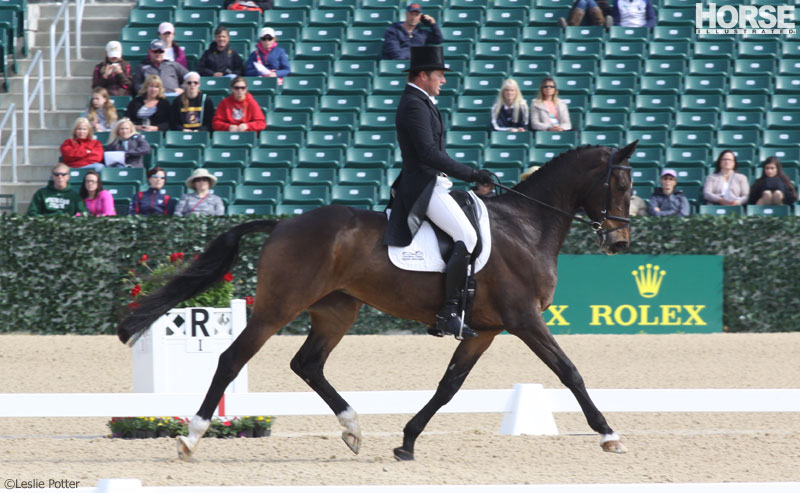 The dressage phase got off to a quiet start on Thursday at the 2014 Rolex Kentucky Three-Day event. It seemed the judges were scoring especially tough, with only two horses breaking 50 to score in the high 40s.