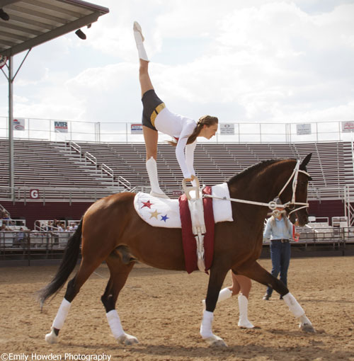 Everybody loves talented equestrians on beautiful horses. How about adding to the mix athletic feats like handstands and leaps? Then kick it up a notch with unique costumes and multiple horse/vaulter combinations performing simultaneously. The icing on the cake: a country-western singer. What could possibly be so cool? Meet the Gymnastics on Horseback Association (GOHA), a Utah-based a vaulting performance group.