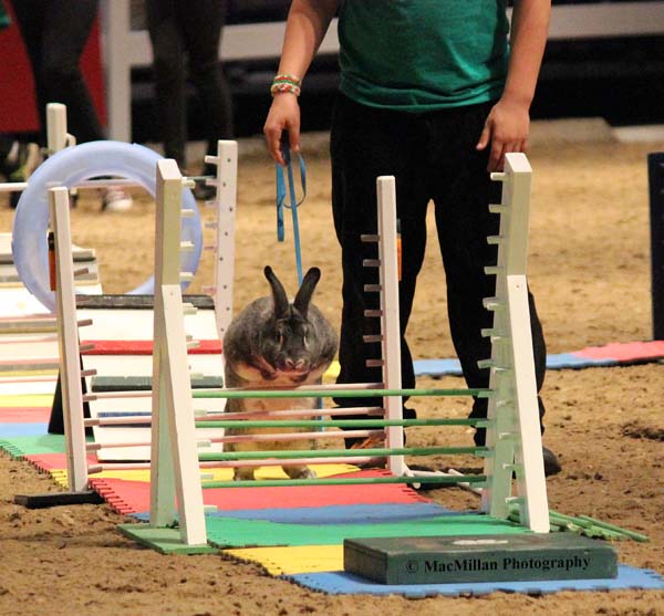 4-H bunny jumping was a huge hit at the Royal Winter Fair. Featured in the President’s Choice Animal Theater, each 4-H member attempted to put their rabbit through a cross between a show jumping course and a dog agility course.