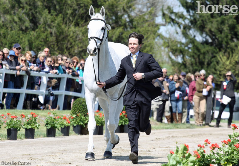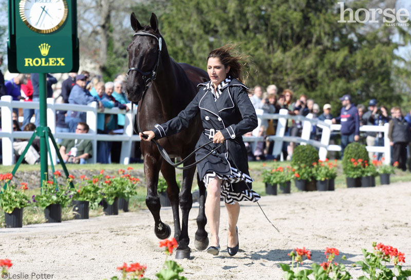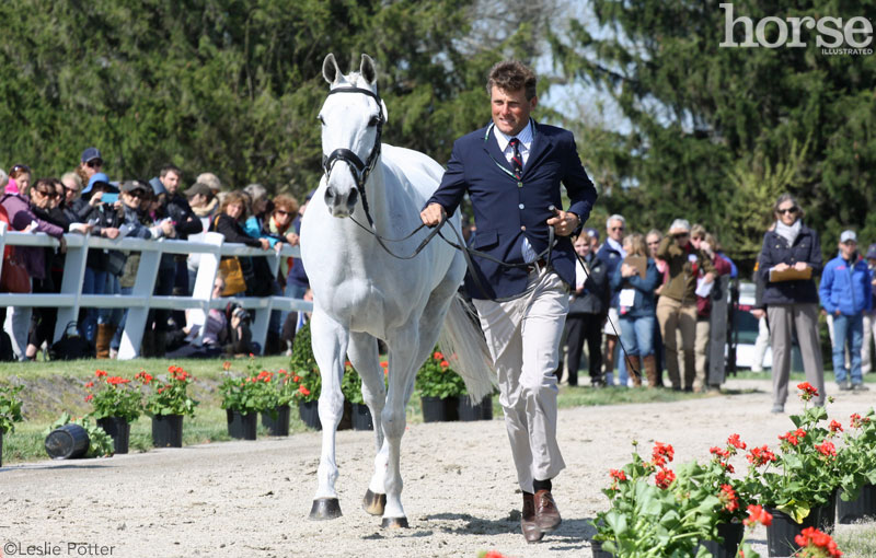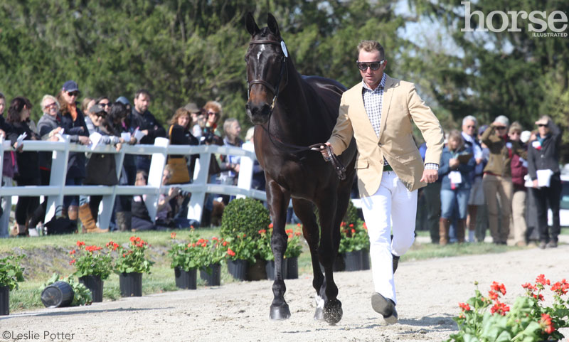 Rolex can’t officially start until Buck Davidson (USA) shows up with his lucky red polka dot socks. Davidson has three horses scheduled to compete this weekend, including longtime partner Ballynoe Castle RM, shown here.