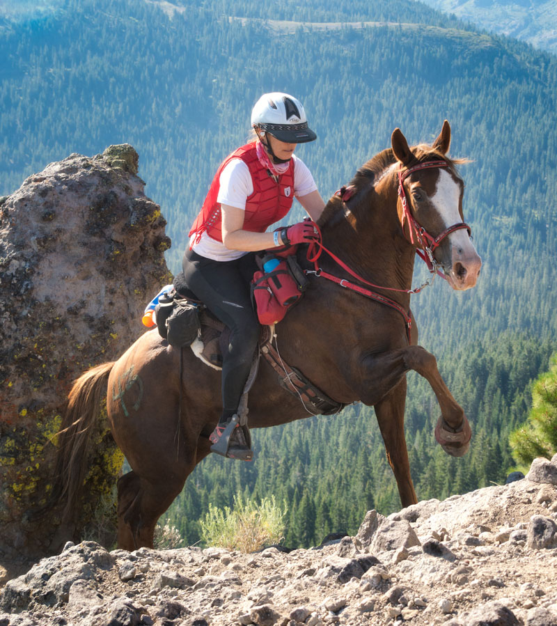 Susan Garlinghouse, DVM, and her 13-year-old Tennessee Walking Horse, John Henry, take on Cougar Rock during the 2013 Tevis Cup ride. Photo courtesy Susan Garlinghouse.