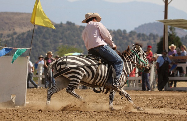 ![]() Zebra racing at the Virginia City International Camel, Ostrich and Zebra Races in 2013. Photo via Reno Tahoe/Flickr |
