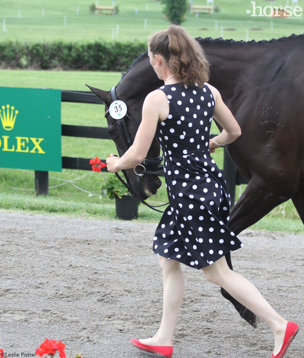 Angela Grzywinski bravely runs in heels with her Thoroughbred mare, Novelle. The pair are competing in their second Rolex together this year.