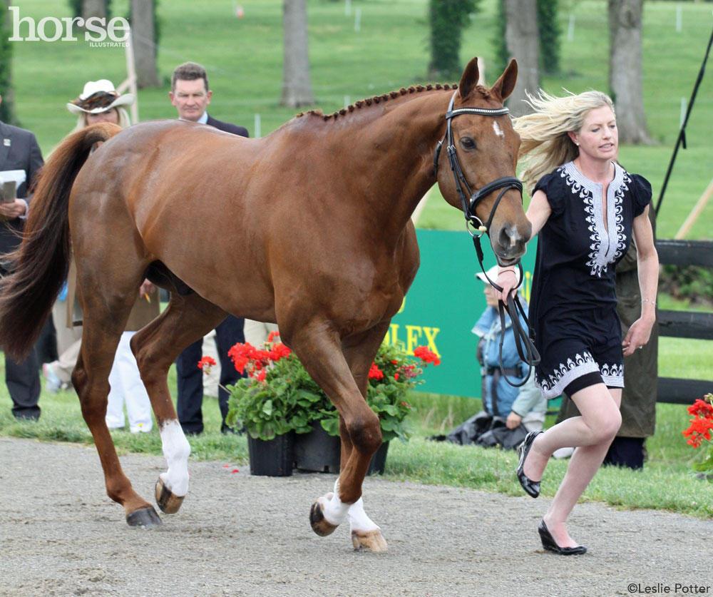 73 horses were presented to the 2016 Rolex Kentucky Three-Day Event ground jury on April 27 while rain showers threatened (and sometimes did more than threaten) overhead. All horses passed and will compete in dressage on Thursday and Friday. Two horses from the original start list, Caroline Martin’s Quantum Solace and Rachel McDonough’s Irish Rhythm, were withdrawn before the inspection.