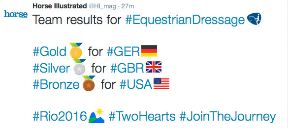 .@TeamUSA celebrations – congrats @USEquestrian #TwoHearts #EquestrianDressage #TeamUSA pic.twitter.com/E0VjNPolfl