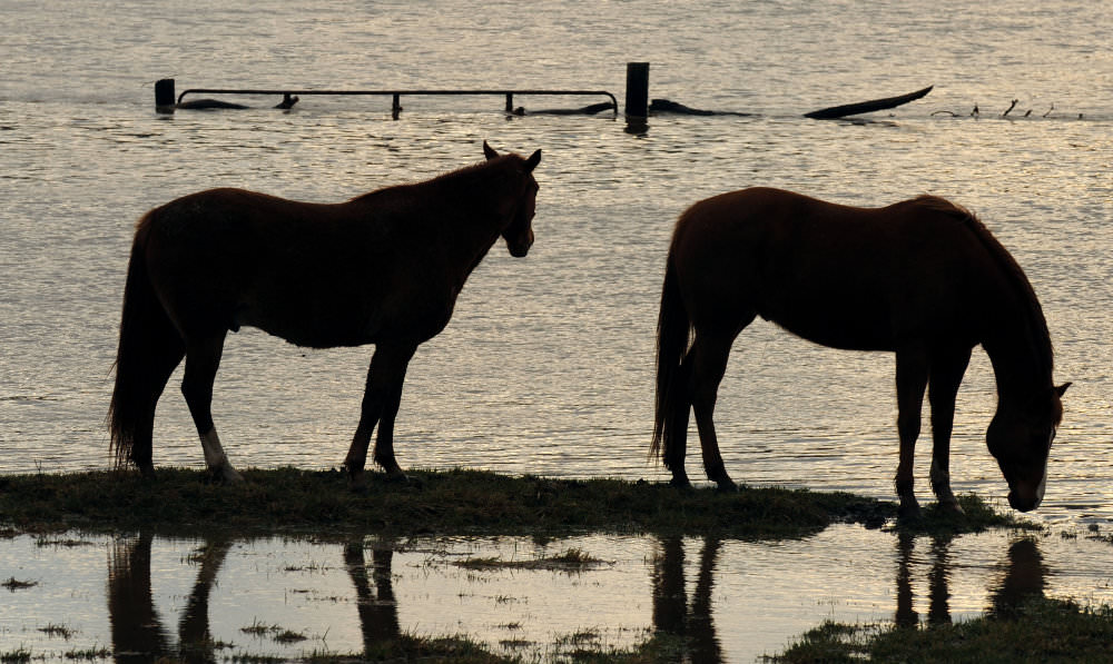 Horses stand on dry ground in a flooded pasture in Missouri in this 2008 photo. The AAEP Foundation’s Equine Disaster Relief Fund helps horses in the aftermath of emergencies, like those weathering Hurricane Harvey and the resulting flooding in Texas and Louisiana this week. Photo: Jocelyn Augustino/FEMA