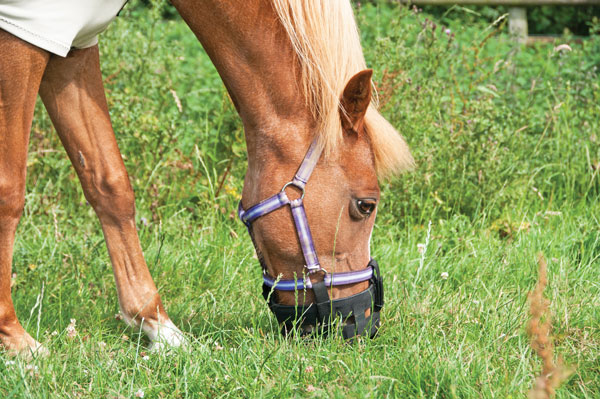 Some easy keepers fare better if turned out with a grazing muzzle, which can reduce intake by as much as 80 percent when used correctly. For greedy eaters, you may need to close down the hole at the bottom of the muzzle a bit more with strong tape, particularly if the horse is turned out on long grass that sticks up into his muzzle bucket.