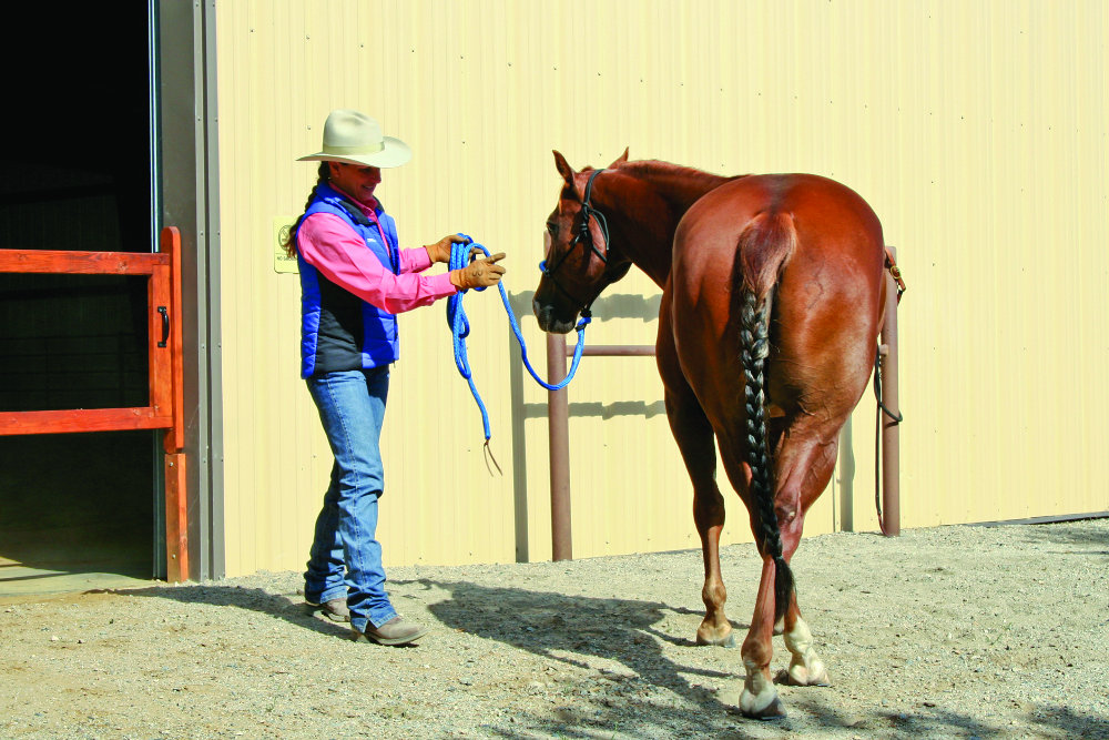 Plan your cues before you start. You must cue your horse first, then follow with a reinforcement. I see many people use what should be a reinforcement as the initial cue. If they are leading their horse and want to turn, they pull the horse with the lead to make him turn. That’s using your reinforcement—the rope—as the cue. The horse will never learn to do it because you have manually moved him instead of asking him.