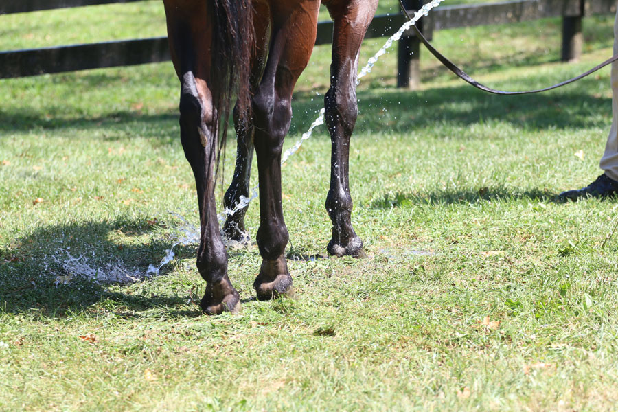 After every workout, examine your horse for leg swelling or lameness, and monitor resting heart rate, rectal temperature, appetite, attitude and general demeanor. Ice boots (or cold water hosing) help limit inflammation in the lower legs when applied for 30 to 40 minutes after a strenuous work effort.