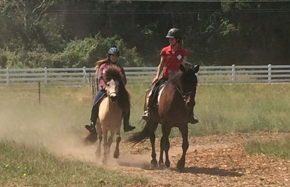 2. A reliable WHOA. In dressage, you’ll lose a few points in every test without a square, motionless halt. Once outside the confines of your arena, you stand to lose more than just a few points without an obedient standstill. It becomes apparent what a safety issue it is when a horse won’t stand quietly for as long as a rider needs. Achieving this calm steady halt is equally important from a blazing speed as well as from a casual meander. To practice this, I have arena riders ride around the arena at fast speeds and then stop sharply when I ask. Than I ask them to ride again at speed, but this time transition gradually to a stop by shifting downward through slower gears first. I call these variations a hard stop versus a soft stop. They prove the horse can keep his mind calm no matter how his physical energy varies.