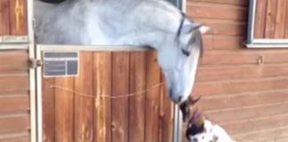 A reporter from Makedonia TV in Greece was upstaged by a hammy bay horse who was not content to just be part of the scenery. According to The Daily Mail, the reporter was there to talk about dressage, but Frankie the horse was more interested in investigating the reporter’s microphone, shirt collar, hair, ears…