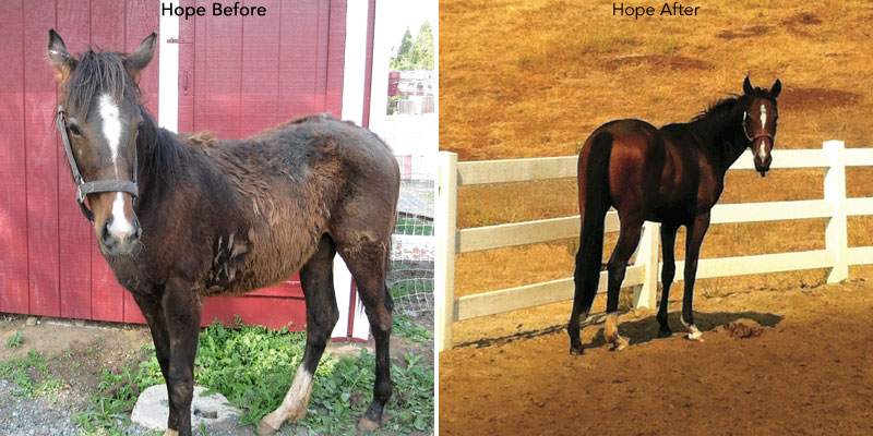 Hope, a 3-year-old Thoroughbred filly, was rescued by Horse Plus Humane Society in Bangor, Calif. (www.horsehumane.org), and adopted by Laurie Sibbitt of Clayton, Calif.