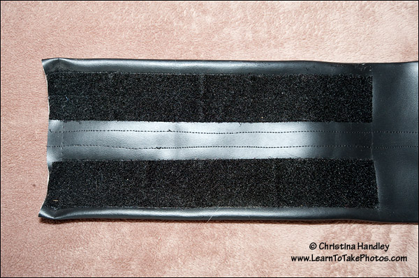 2. Apply two 12” long Velcro strips with a double row of top stitching. Long strips of Velcro are helpful for holding strength and adjustability.