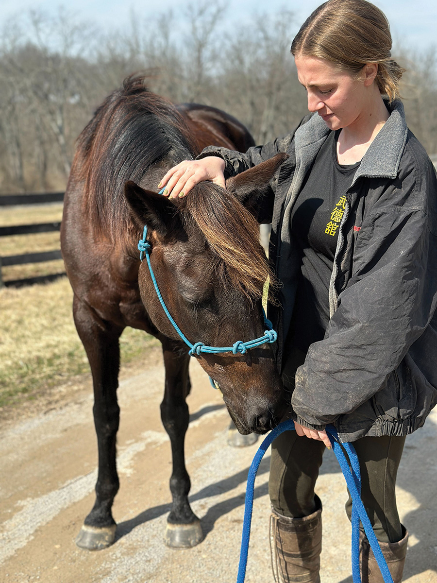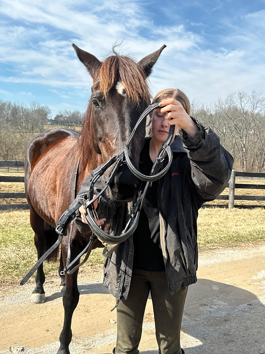 “The students don’t slowly drop the bit down out of the horse’s mouth,” she says. “Instead, they may pull the bridle over the horse’s head and the bit gets caught on his teeth. The horse can panic or get scared, losing trust when the bridle is lowered.”