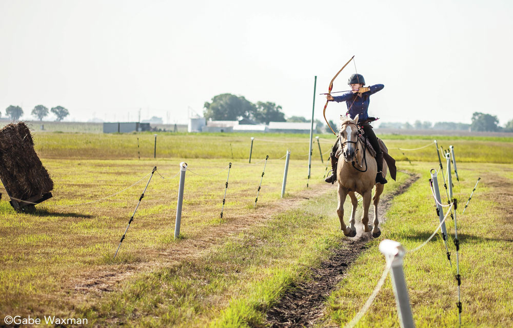 Imagine galloping across an open field on an energetic horse, taking your hands off the reins and guiding him with just a shift of your leg and bodyweight. Next, imagine taking your bow and arrow, and—still at a full gallop—taking aim at a target. Now you have some idea of what it’s like to participate in mounted archery.