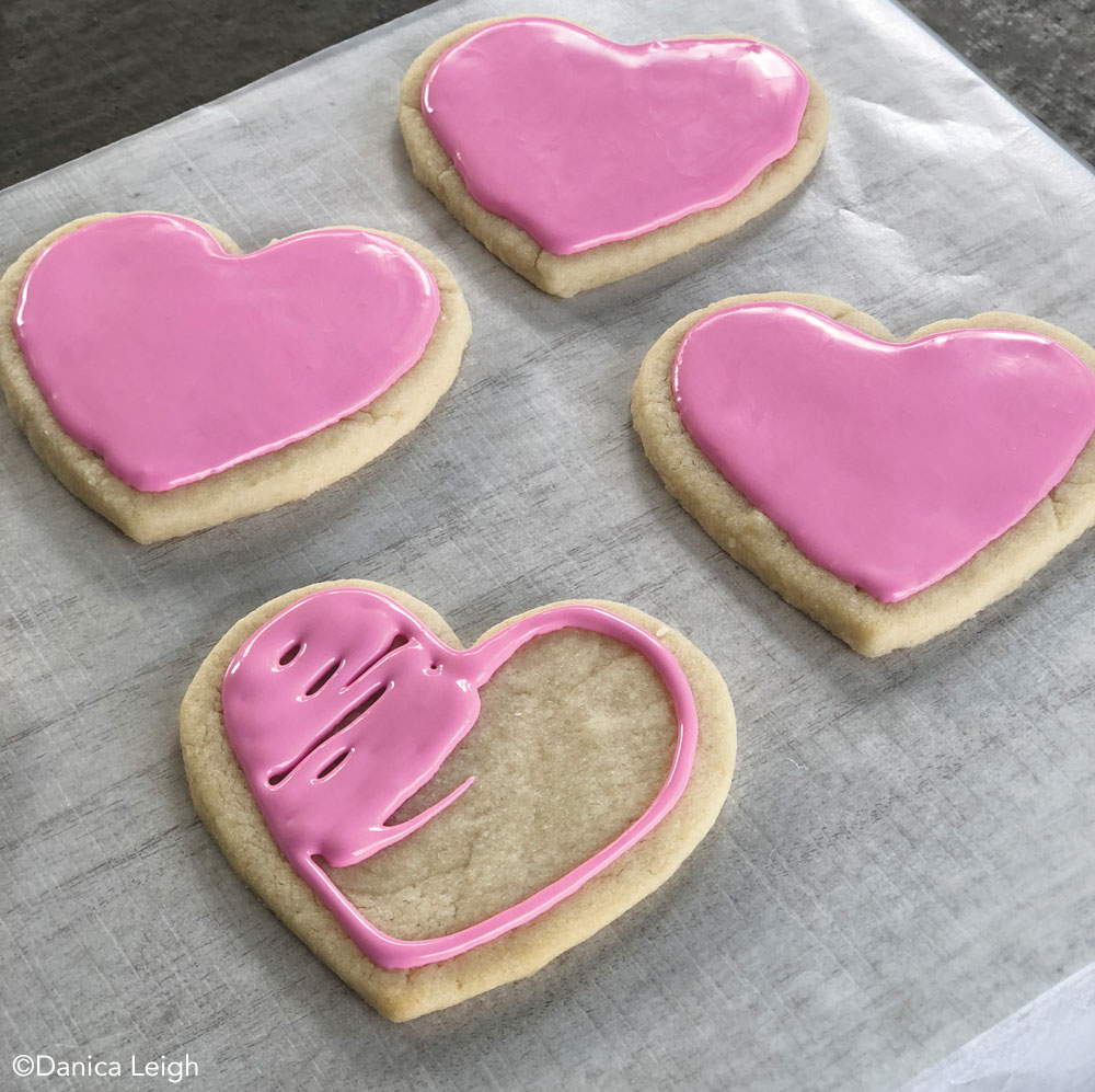 Frosting Valentine's Day cookies