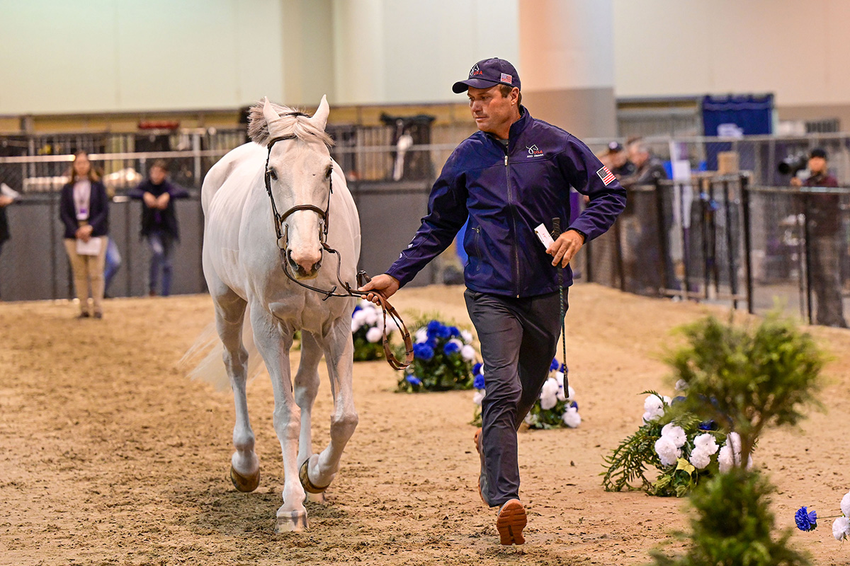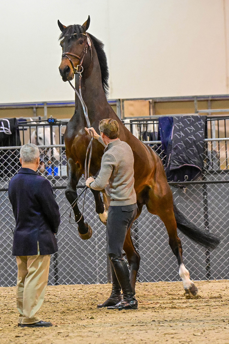 Andreas Schau’s (Denmark) 12-year-old Holsteiner stallion Darc de Lux demonstrated some airs above the ground before trotting in front of the ground jury. He was accepted for competition. Photo by Allen & Kim MacMillan/MacMillan PhotographyThe USA’s Aaron Vale and Prescott, an 11-year-old Holsteiner gelding, show just how it’s done in their turn down the trot track during the jumping inspection at the 2023 FEI World Cup Finals. Photo by Allen & Kim MacMillan/MacMillan PhotographyAilish Cunniffe from the USA successfully trotted her Vivaldi du Thiel, a 14-year-old Selle Française gelding, for the inspection team. Photo by Allen & Kim MacMillan/MacMillan PhotographyMcLain Ward’s groom handled Ward’s mare Callas during the first horse inspection. Callas, a 15-year-old Holsteiner, showed her spicy personality tossing in a few bucks, but ultimately passed muster and will start competition on Wednesday. Photo by Allen & Kim MacMillan/MacMillan PhotographyDevin Ryan and Eddie Blue are no strangers to the world stage, as they were members of the 2018 FEI Tryon World Equestrian Games gold-medal team from the USA. They passed inspection Monday with no issues. Photo by Allen & Kim MacMillan/MacMillan PhotographyThe USA’s Hunter Holloway jogs her 14-year-old KWPN gelding Eastern Jam. She also presented the 12-year-old gray mare Pepita Con Spita. Both horses passed. Photo by Allen & Kim MacMillan/MacMillan PhotographyNicholas Dello Joio and Cornet’s Cambridge (USA) took their turn in front of the judges and were accepted by the jury for competition. Photo by Allen & Kim MacMillan/MacMillan PhotographyOne of three U.S. riders from the North American League-West, Elisa Broz successfully presented her Kardenta van t’ Meerhof, a 13-year-old Belgian Warmblood mare, to the ground jury. Photo by Allen & Kim MacMillan/MacMillan PhotographyNatalie Dean and Acota M also represent the North American League-West and jogged for the jury, receiving a positive nod to begin competition. Photo by Allen & Kim MacMillan/MacMillan PhotographySimonne Berg, USA, and the 16-year-old KWPN gelding Cooper took their turn on the inspection path and passed. They are the third combination representing the North American League-West. Photo by Allen & Kim MacMillan/MacMillan PhotographyCanada’s Erynn Ballard, here leading Gakhir, a 12-year-old KWPN gelding, qualified two horses for the 2023 FEI World Cup Finals and both passed jumping inspection Monday. Her other horse is Hero, an 11-year-old KWPN gelding. Photo by Allen & Kim MacMillan/MacMillan PhotographyReigning World Champions Henrik von Eckermann and King Edward from Sweden passed inspection with no problems. Photo by Allen & Kim MacMillan/MacMillan Photography