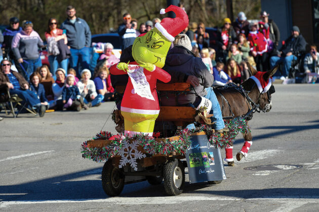 And what of Seuss’s Mr. Grinch, the curmudgeonly character who crept into Whoville to steal Christmas in the story? If parade goers look closely, they are likely to see him riding in one of the carriages along with cheerfully waving Santa and Mrs. Claus in another. It’s all part of the horsey holiday fun!