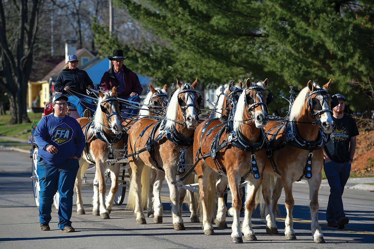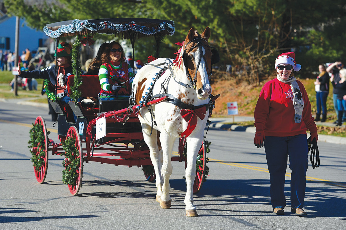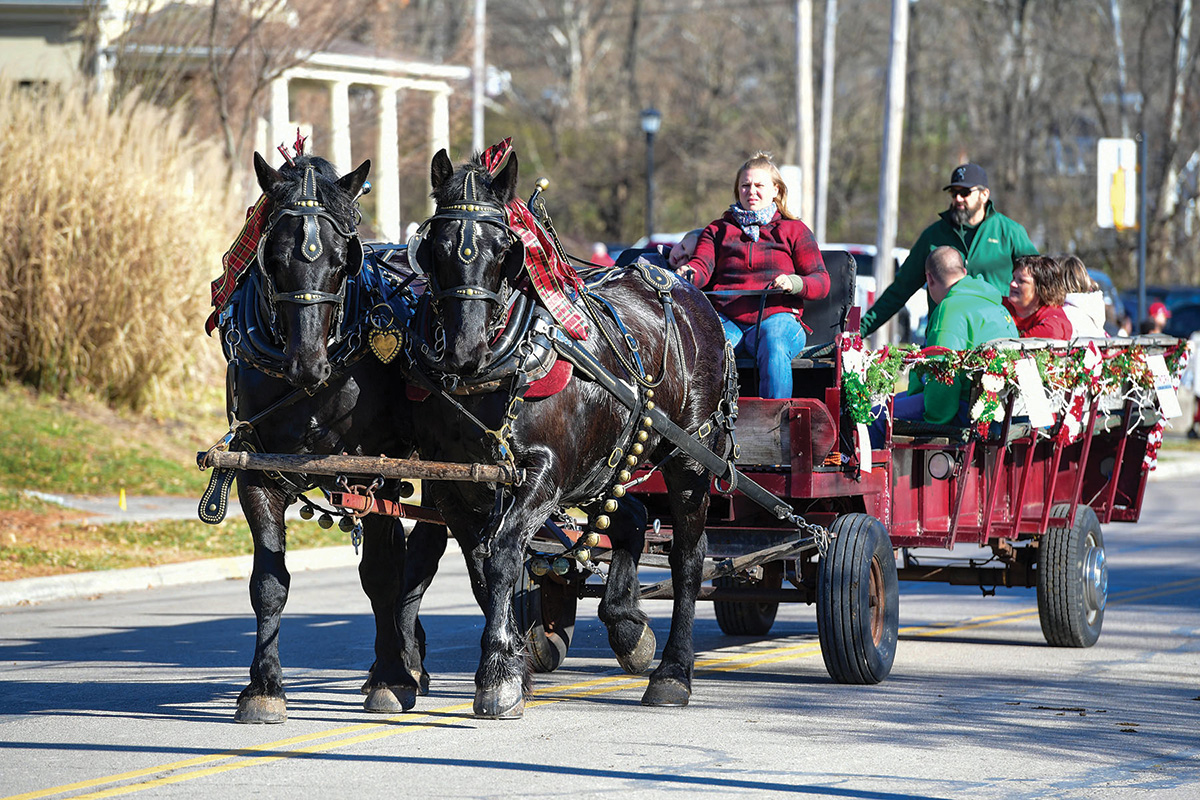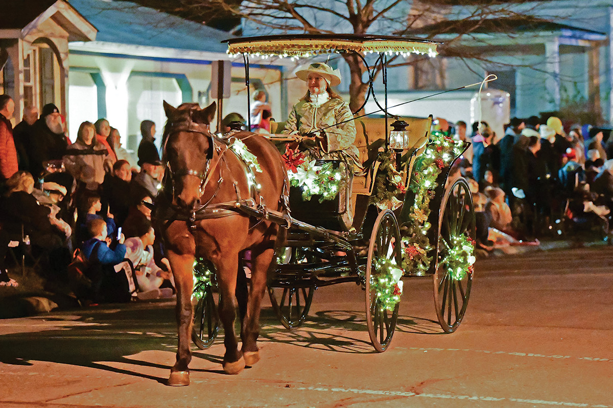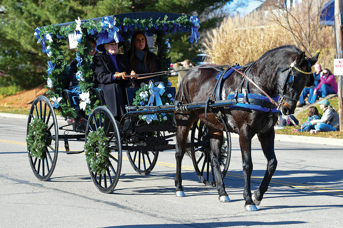 “We wanted to establish some holiday events in beautiful downtown Lebanon to showcase the businesses around town and to entertain,” she says. “In 1988, we had a trial run, thinking that we liked the idea of horse-drawn carriages, and had a small event with maybe eight horses. The next year, we decided that we had hit on something and had our first official parade. We wanted it to be all horse-drawn carriages; we didn’t want any other types of entries. We had 15 or 20 units that first year and a crowd of maybe 15,000.”