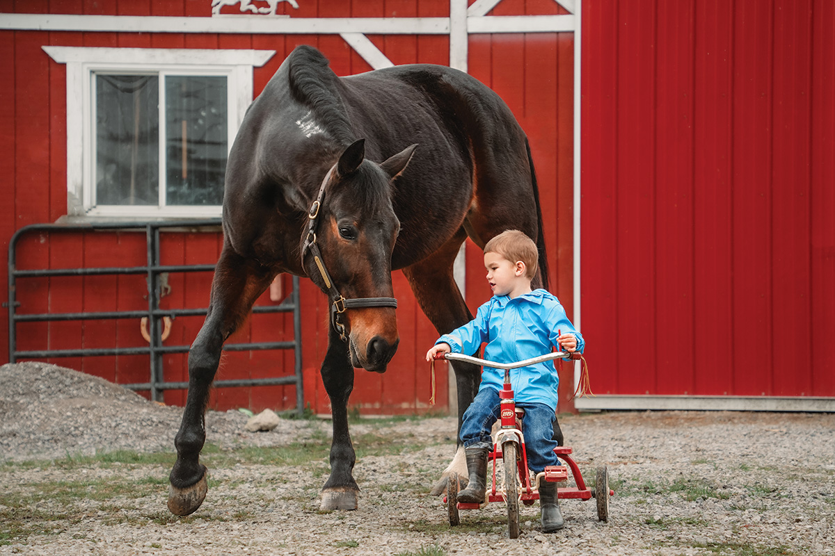 The day I knew this hive-stricken horse had to stay with our family was when Twizzler was standing in the cross-ties watching our 2-year-old son Glenn ride his tricycle around in the barn. Glenn knows very little about horses, but he knows how Emmy was with him—kind and aware. Glenn assumes all horses are cool with noisy, tiny people riding about.