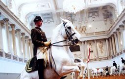 The stallion Bastian Vom Oderhaff, owned by Kelly White, is a rare white dun. Photo courtesy Genie Images.
