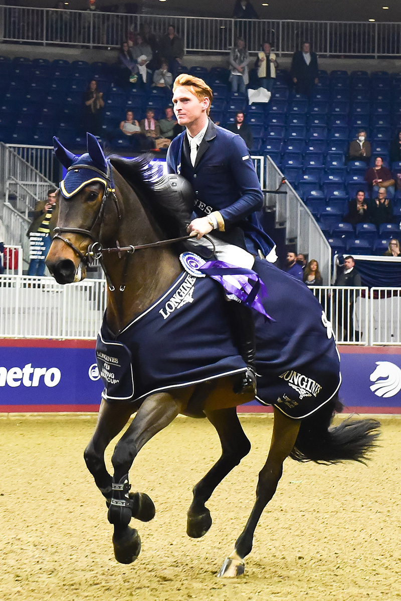 - Ireland’s Daniel Coyle spent most of his successful qualifying season in the USA, so he received one of the “extra athletes” invites for the North American League. He is shown here with Legacy in the 2022 Royal Horse Show World Cup Class victory gallop. Photo by Sarah E. Miller/MacMillan Photography