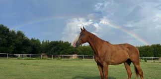In addition to drinking, there was also plenty of drama with stallion battles and posturing. A brief storm rolled in just before sunset, making for a dramatic backdrop for photographing the herd. The rest of the afternoon was spent observing and photographing the beauty of these animals, along with herd dynamics, both tender and comical. Photo by Shelley PaulsonLike a great symphonic finale, what was left of the storm clouds drifted by the sun just before it sank below the horizon, shooting peach rays of light into the sky. I held my breath as two horses touched noses and I clicked the shutter. Photo by Shelley Paulson