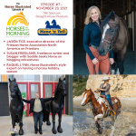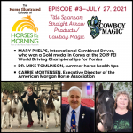Go to EpisodeIn the 13th episode of The Horse Illustrated Episode of Horses in the Morning, sponsored by Title Sponsor Straight Arrow Products, hosts Glenn the Geek and Holly Caccamise chat with business owner Cindy Lay and HI contributor Robyn Volkening.