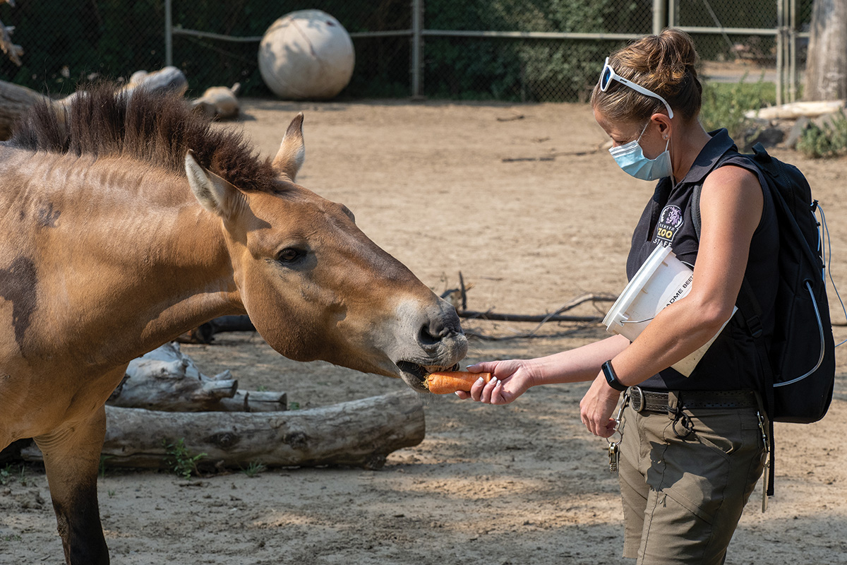 “We have a strong training program for our horses that reside at the zoo, including voluntary blood draws and hoof trims,” says Pfalzer. “For many years, Przewalski’s Horses were thought of as untrainable. Our animal care specialists have done an excellent job proving that untrue by building strong relationships with the animals that enable successfully trained voluntary behaviors so that we may provide the best care for them.”
