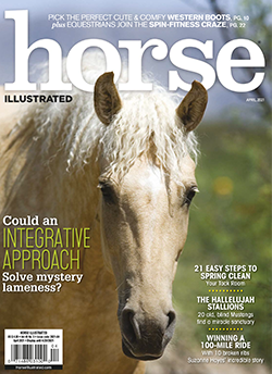 The April 2021 Print Issue of Horse Illustrated includes using an integrative approach to solve mystery lameness, easy steps to spring cleaning your tack room, purchasing cowboy boots, perfect reining circles and jumping distances, the Curly Horse breed, and more (see the full contents above).