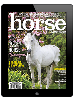 The April 2022 Digital Issue of Horse Illustrated includes an interview with a movie wrangler, an inspiring story of taking on the challenges of a physical disability to achieve the dream of owning a horse, the latest care for kissing spine, nutrition for hoof health, saddle fit advice, and more (see the full contents above).